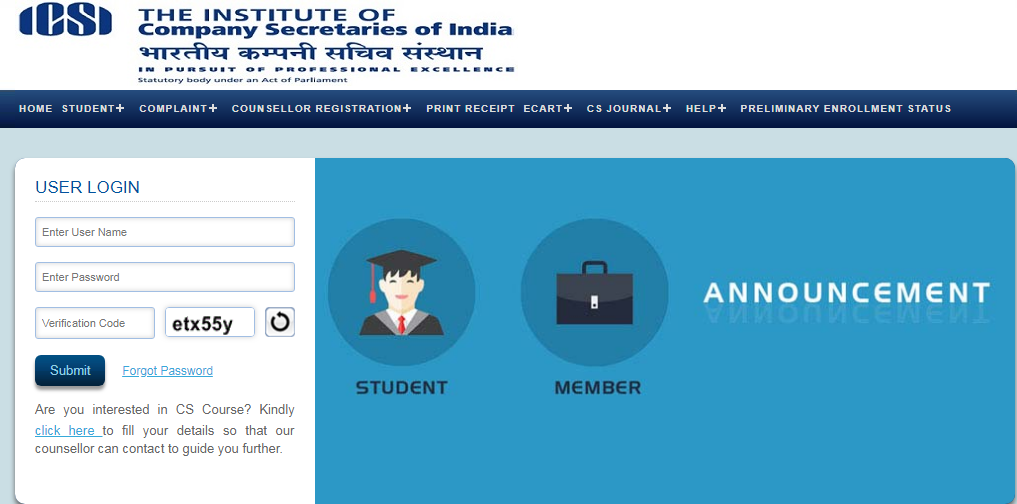 - Open Official Web Portal of ICSI – www.icsi.edu