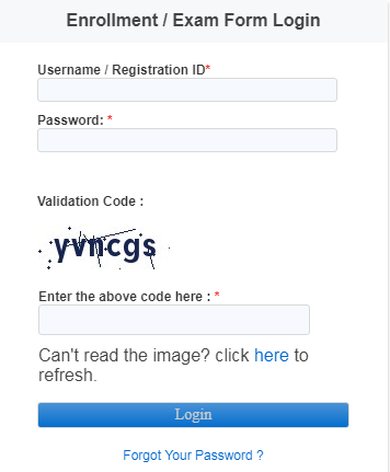 - Enter your Enrollment No. or Registration ID and Password to Fill your Exam Form.