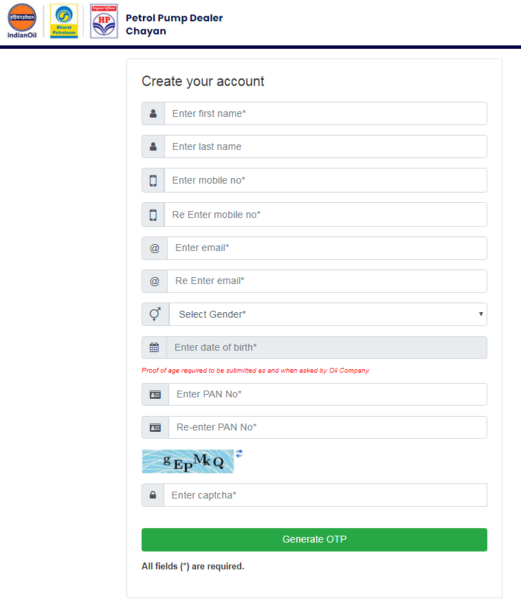 - Register in the Portal – www.petrolpumpdealerchayan.in
