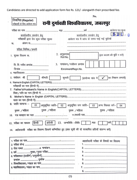 - Take Print out of RDVV Exam Form & Fees Receipt for future use.