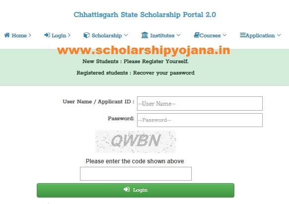 - सबसे पहले आपको छत्तीसगढ़ स्कालरशिप पोर्टल की ऑफिसियल वेबसाइट पर जाना होगा |