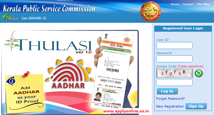 - Kerala PSC Thulasi one time registration