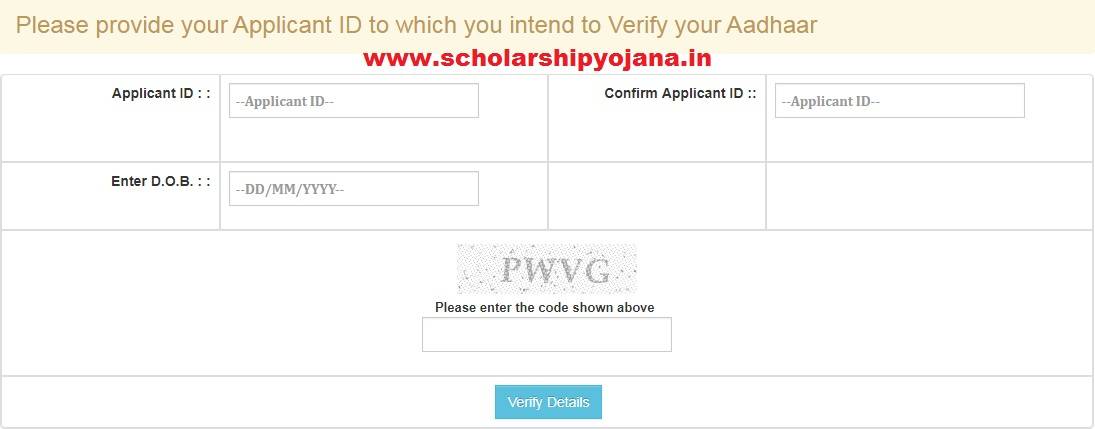 - विधार्थी अपने Applicant ID के साथ आधार को Verify कर सकते हैं |