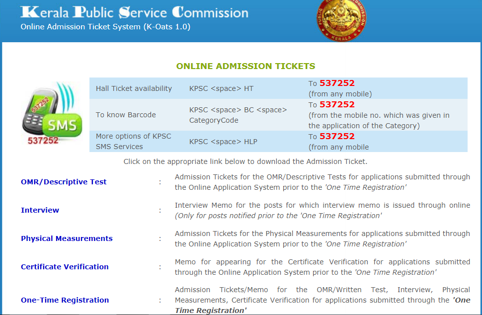 - For More Options of KPSC SMS Services “KPSC <Space> HLP & Send to 537252.