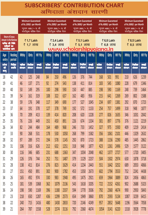 Atal Pension Yojana Chart 2021 |