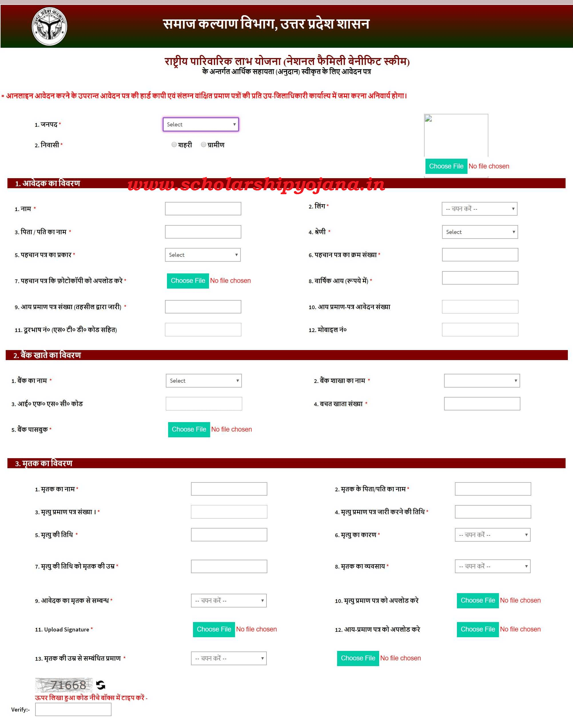 • You have to fill the following Application Form.Rashtriya Parivarik Labh Yojana UP Online Application Form